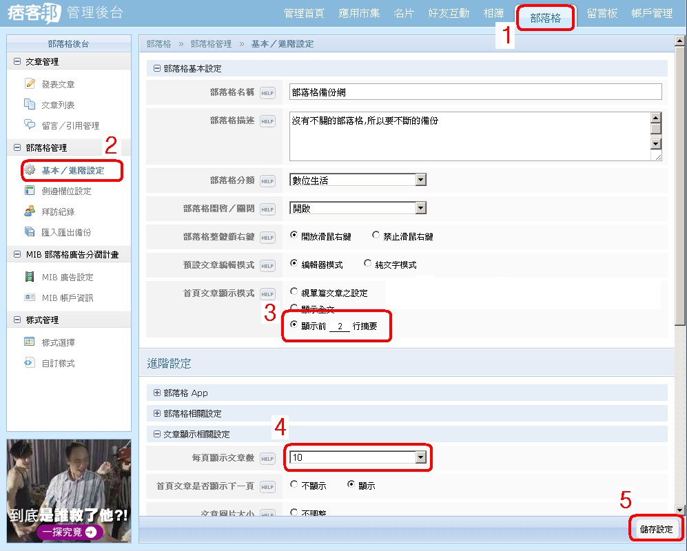 4.每頁顯示文章數:建議設定在20以內,數字越小顯示越快囉